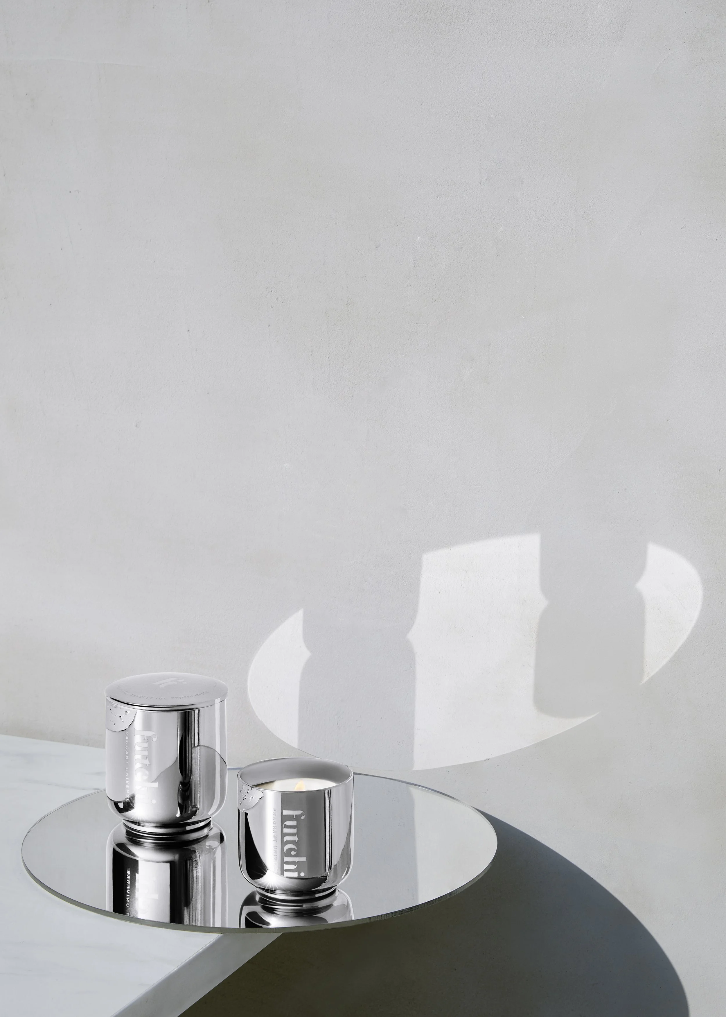 The candle was set to create an unknown scent nonexistent on earth. The landscape of the milky way brings scents of rusty iron soaked in water and glittering grains of crystal hidden in soft white sands.